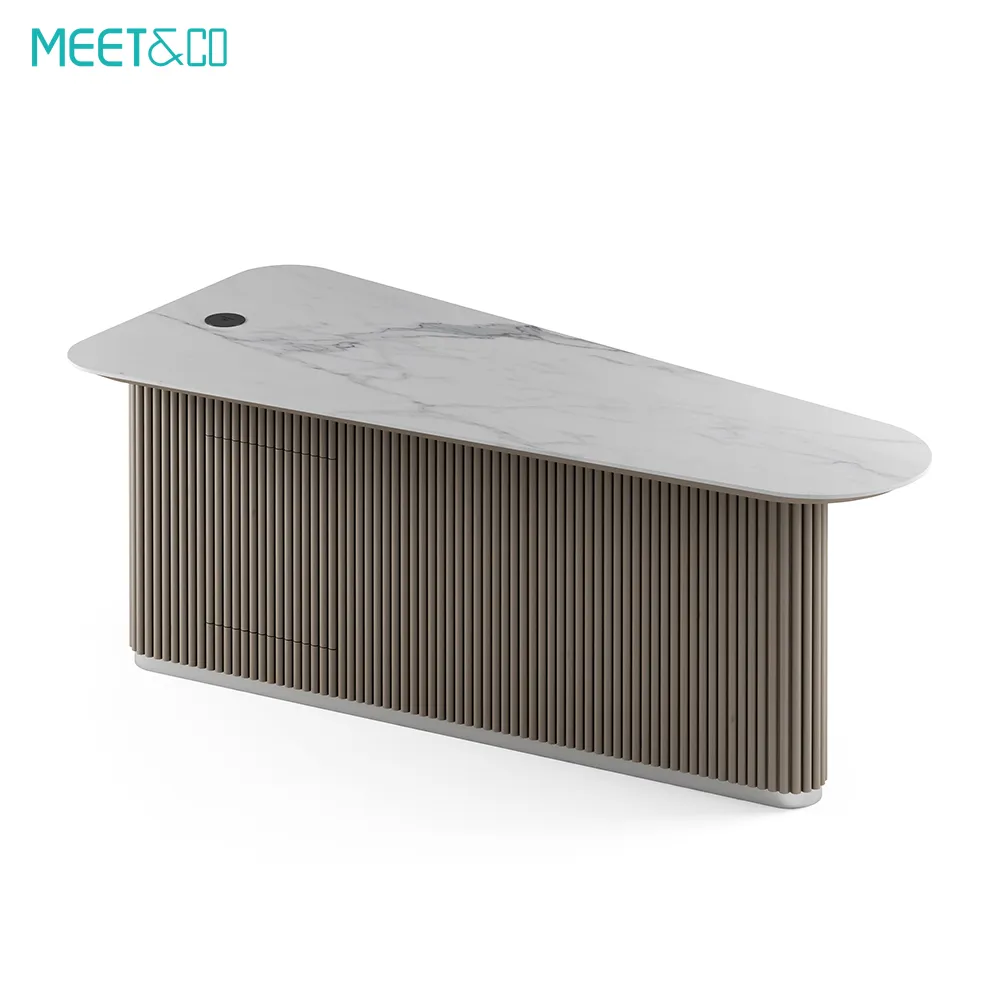 It offers a variety of tabletop designs, including round, irregular, and oval shapes, all of which fit seamlessly into casual social settings. The combination of marble, sintered stone, and brushed stainless steel not only showcases high-end texture but also delivers a visually light and stylish experience.
