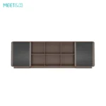 The front side panel is made of black brushed fireproof board with metal decorative strips, and the rest is walnut texture. The golden handle is used as an embellishment and has built-in buffer door hinges and buffer guide rails. Whether it is appearance or practicality, it is the best choice for modern offices.