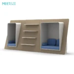 The seat design is comfortable and equipped with soft high-rebound cotton cushions, providing good support and sitting feeling. The small table in front is convenient for placing items or using a laptop, adding convenience. The closed design provides users with a private space, suitable for personal rest, work or video conferencing, effectively isolating external interference and ensuring concentration and comfort.