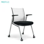 The Meet&Co Tablet Arm Nesting Chairs are a budget-friendly, space-saving choice for classrooms or conference rooms that need to accommodate multiple people without using bulky training tables. These chairs come with a handy desk arm that swivels up for a sturdy, smooth writing surface and tucks away when not needed. After the session, just flip up the seat to stack and store the chairs vertically, keeping things neat and compact!