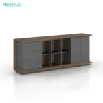 The cabinet is masterfully crafted with wood grain-colored panels that partially envelop the structure, creating a harmonious blend of visibility and privacy. Its design incorporates both open and closed compartments, allowing for versatile storage solutions that cater to a variety of needs. The open shelves offer easy access and display options, while the closed areas keep your items discreetly stored.