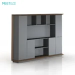 The cabinet's dignified grey body, paired with the rich, deep walnut hues, creates an understated yet opulent aesthetic. This sophisticated color combination exudes a serene elegance, making it a statement piece that complements any high-end decor. The cabinet's design not only offers functionality but also serves as a testament to refined taste.